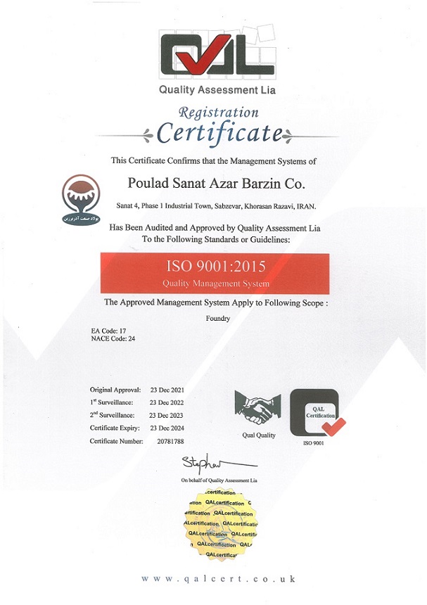 اولین انتخاب برای یک واحد صنعتی و شرکت تولیدی، اخذ گواهینامه ایزو ۹۰۰۱ (مدیریت کیفیت) می باشد.